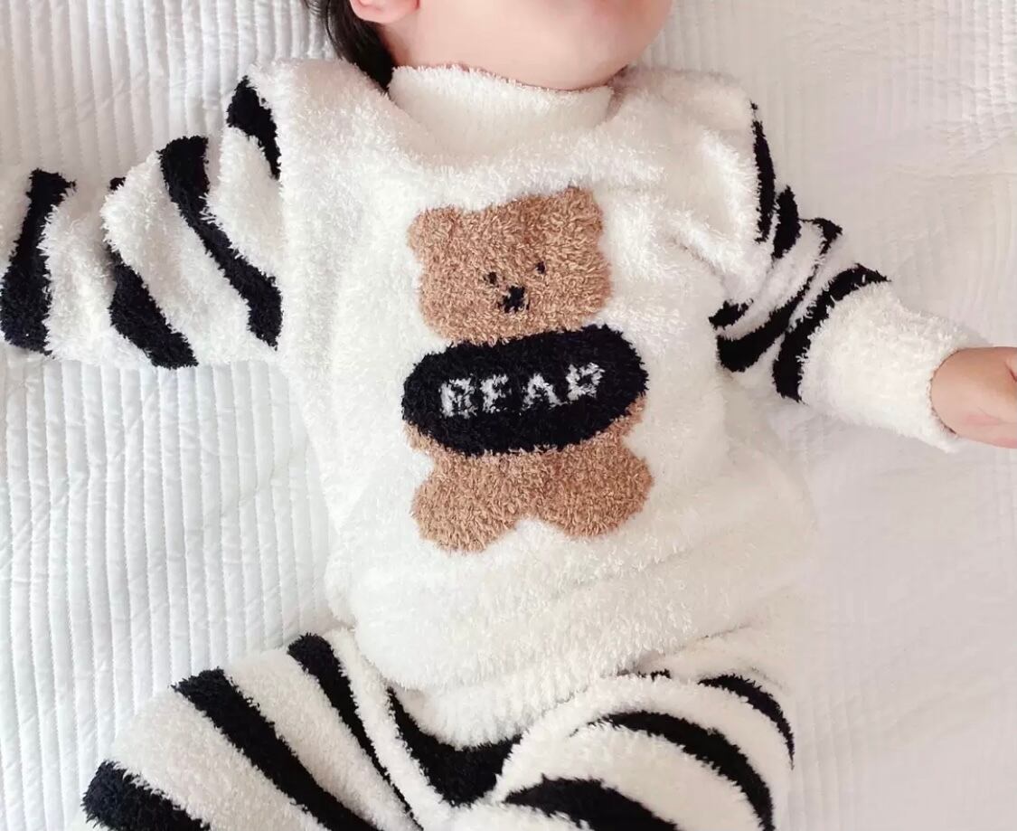 ⑤⑥くまちゃん ふわふわ ボーダー ルームウェア パジャマ ベビー服 キッズ